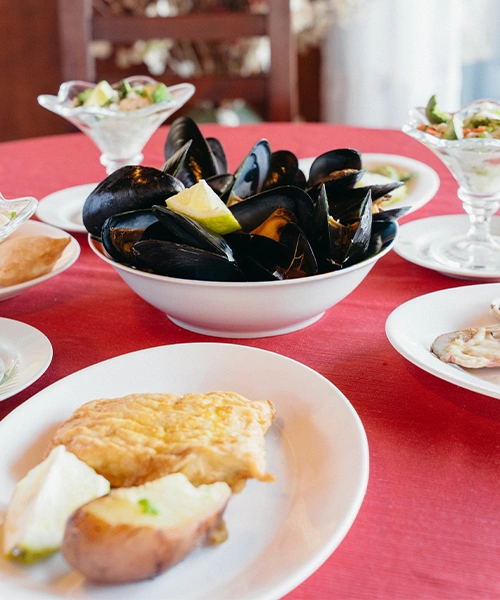 Ofrecemos una gran variedad de platos y gastronomía típica de la zona: Disfruta del sabor auténtico de productos frescos del mar, cervezas artesanales, pastelería, coctelería y más. Todo preparado con amor y dedicación por nuestros socios comerciales.